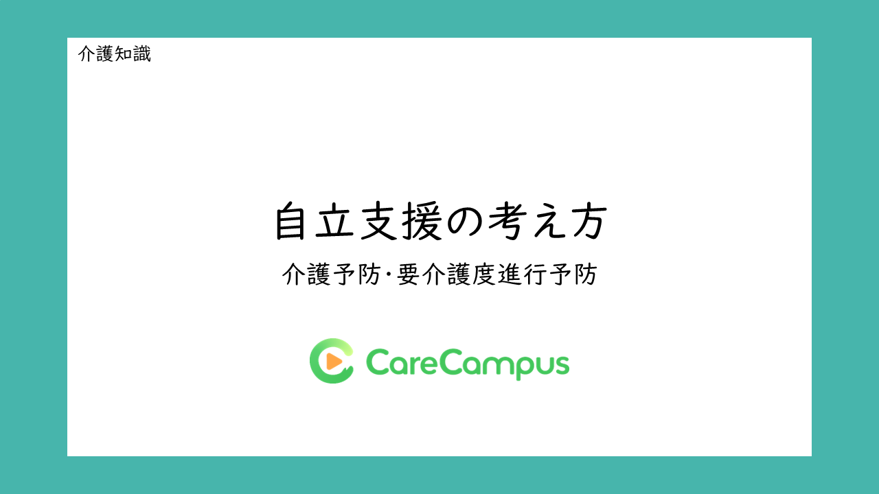 介護予防・要介護度進行予防として、自立支援の考え方について解説した講義形式の動画です。自立支援とは何か、どんな考え方が大切なのかを学ぶことができます。